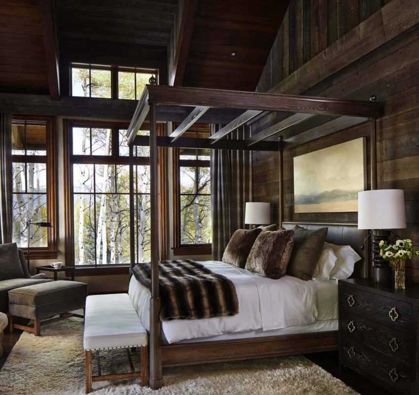 Просторная или маленькая спальня в темном цвете и с темной мебелью пропитана ощущением уюта и камерности. Простые аксессуары выглядят роскошно, а мелкие погрешности в отделке совершенно незаметны.
