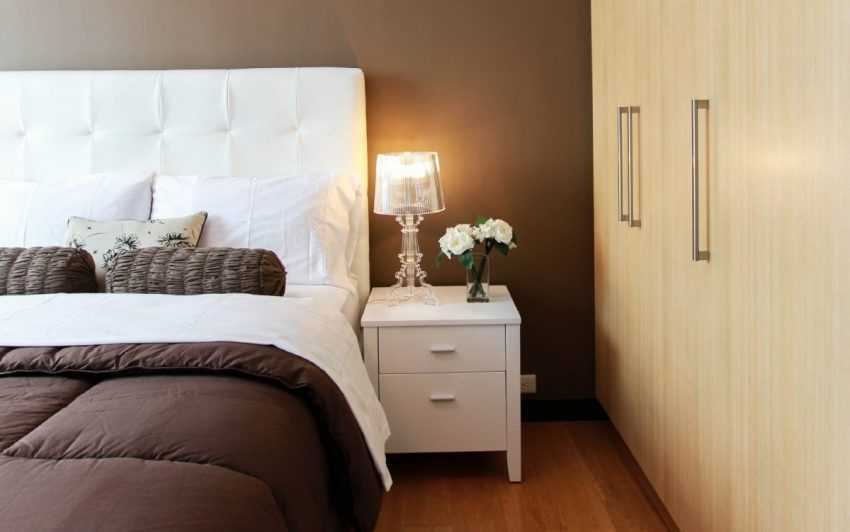 Коричневая гамма ассоциируется с почвой, натуральным деревом, зёрнами кофе, уютом очага. Будучи применённой в интерьере, она олицетворяет крепость и надёжность, постоянство и здравомыслие, защищённость и тепло. Дизайн спальни в коричневых тонах расслабляет и способствует качественному отдыху.