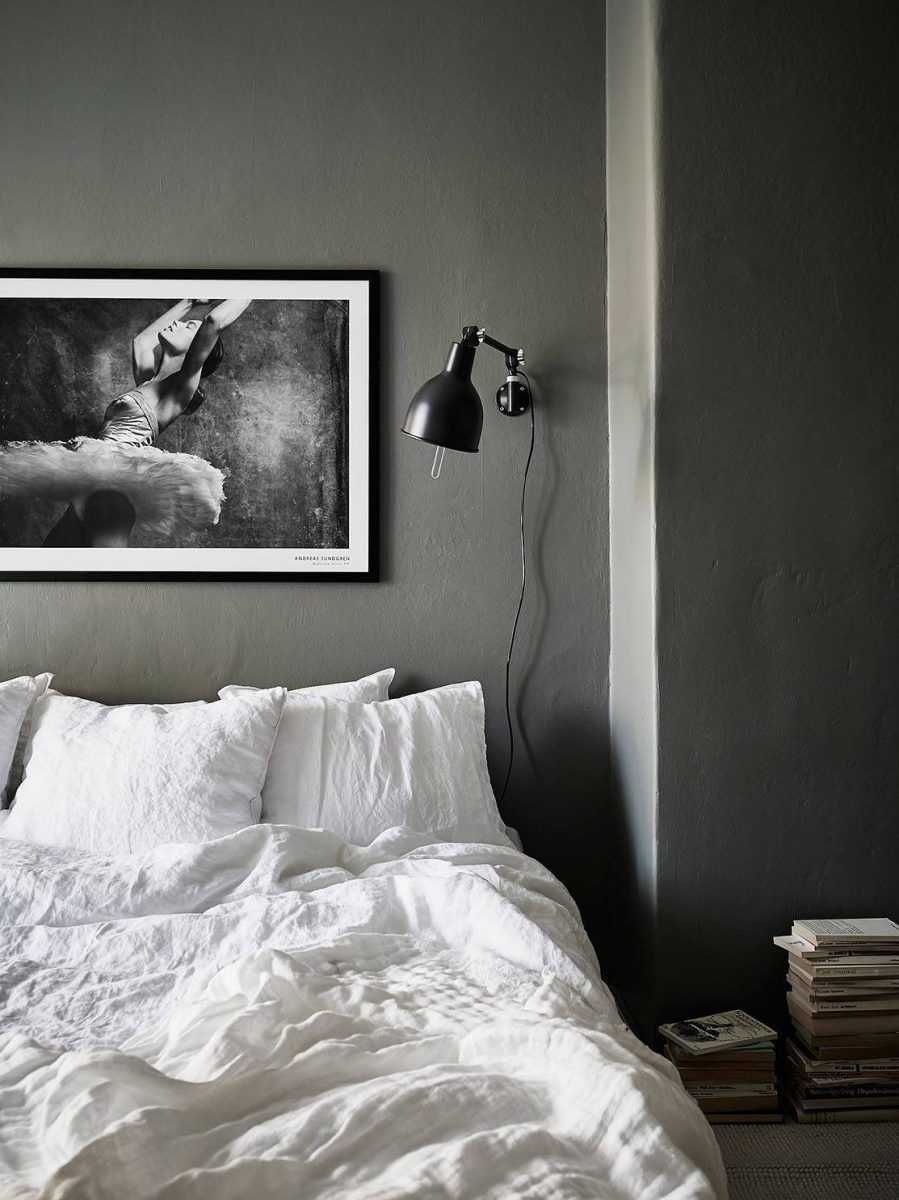 - Эффектно. Темные стены, в отличие от белоснежных скандинавских интерьеров, роскошно оттеняют аксессуары и изящные очертания мебели. Даже лаконичные постеры и фотографии в рамках на фоне темной стены выглядят броско, что уж говорить о дизайнерских предметах и произведениях искусства!
