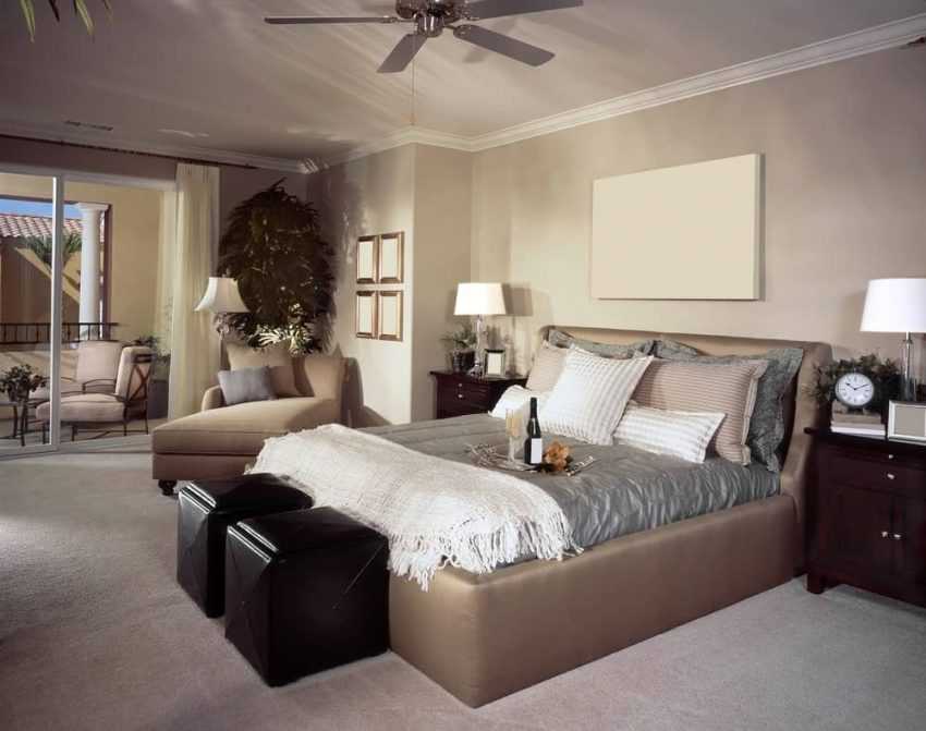 Широкий спектр бежевой цветовой гаммы позволяет подобрать нужный оттенок. Украшая просторную спальню можно реализовать самые неожиданные цветовые решения. В маленькой спальне следует использовать светлые оттенки спектра.