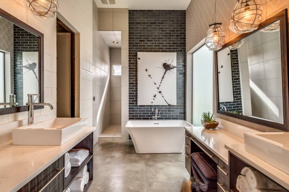 Потрясающий дизайн ванной комнаты. Сочетание разных стилей и цветов благодаря умелым рукам дизайнеров превратилось во что-то невероятно красивое и трендовое.