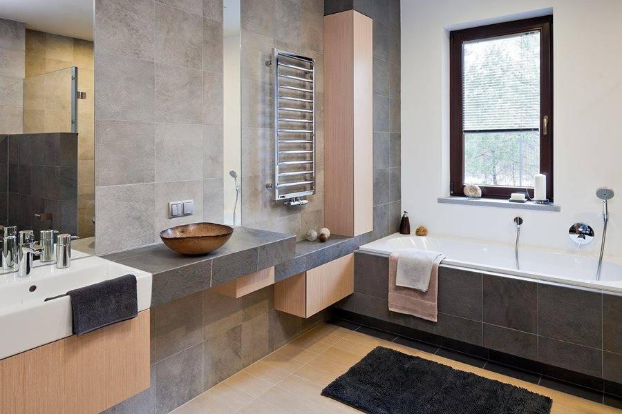 Керамогранит и плитка по-прежнему удерживают пальму первенства в списке материалов для напольного покрытия ванной. Однако сегодня к ним добавились новые решения, которые стоит попробовать. В их числе:
