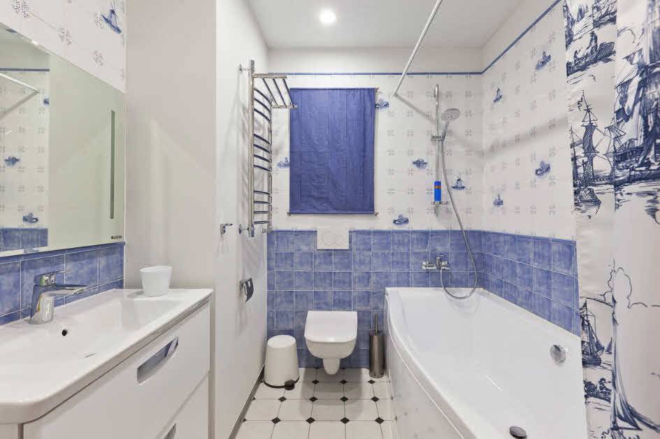 Голубой и синий кафель стали первыми заменителями светлых гамм. Вот именно такая цветовая палитра считается успешной, классической. Морская тема обладает огромной популярностью в наши дни.