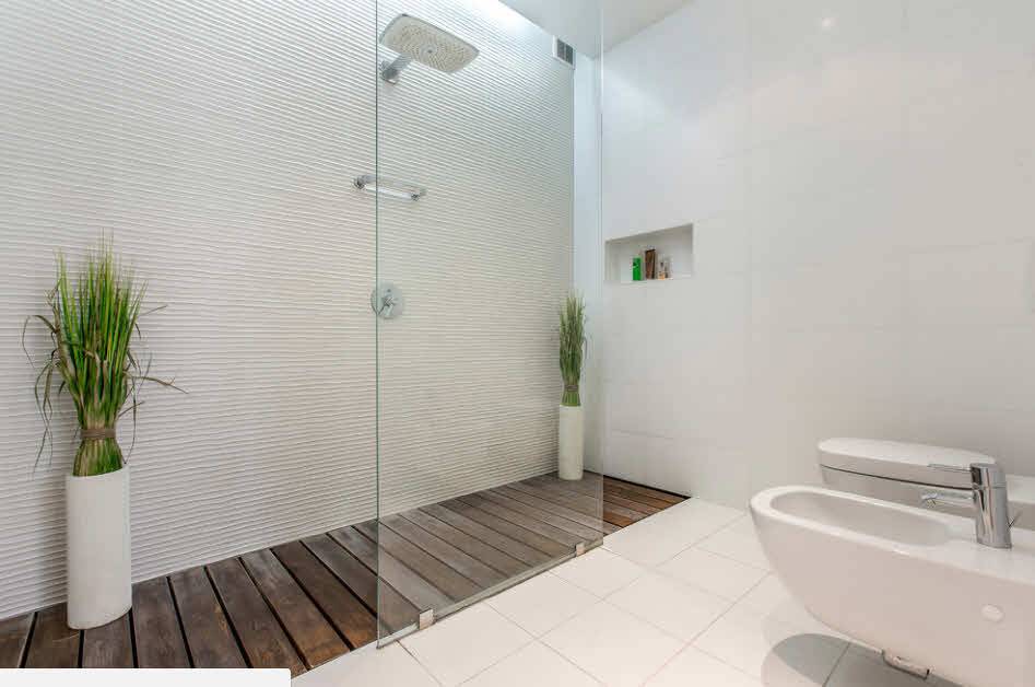 Для пола санузла рекомендуется выбирать керамогранит или кварцвинил, оптимальным решением для стен будет тот же керамогранит и кафель. Одно из модных направлений в дизайне заключается в использовании напольных материалов для декора стен. Напольное покрытие может “подниматься” вверх, объединяя пространство в единое целое.