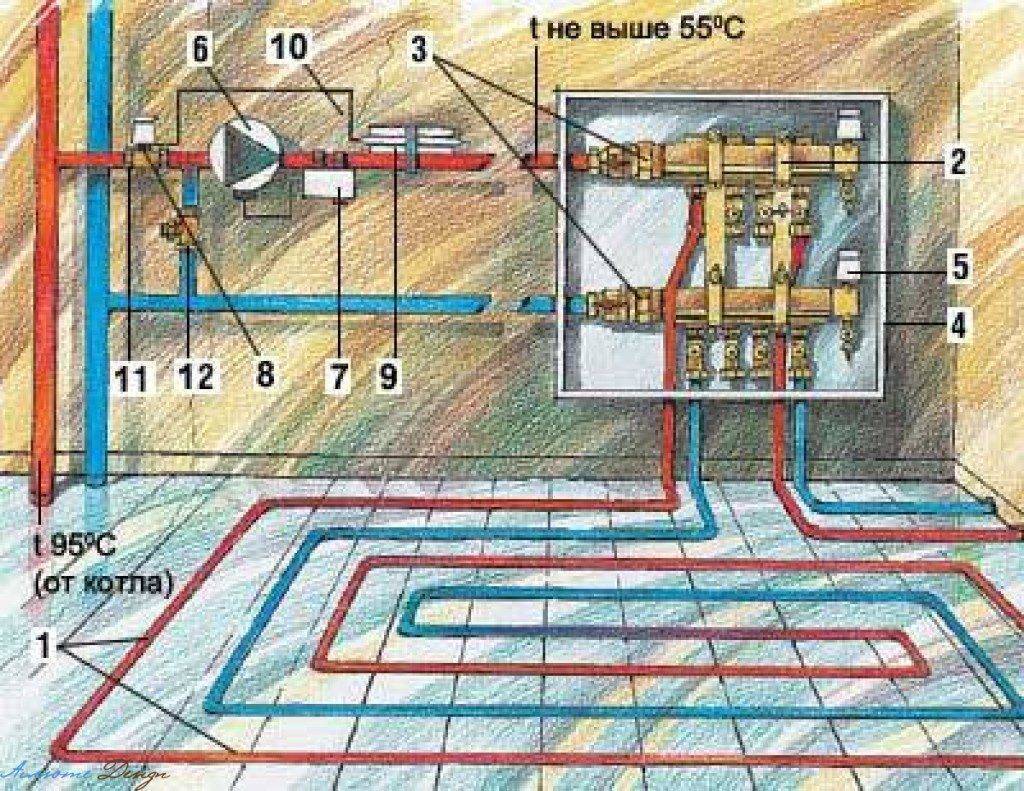 Чтобы управлять системой водяного пола используют громоздкое дополнительное оборудование, которое позволяет отключать систему в каждой комнате отдельно.