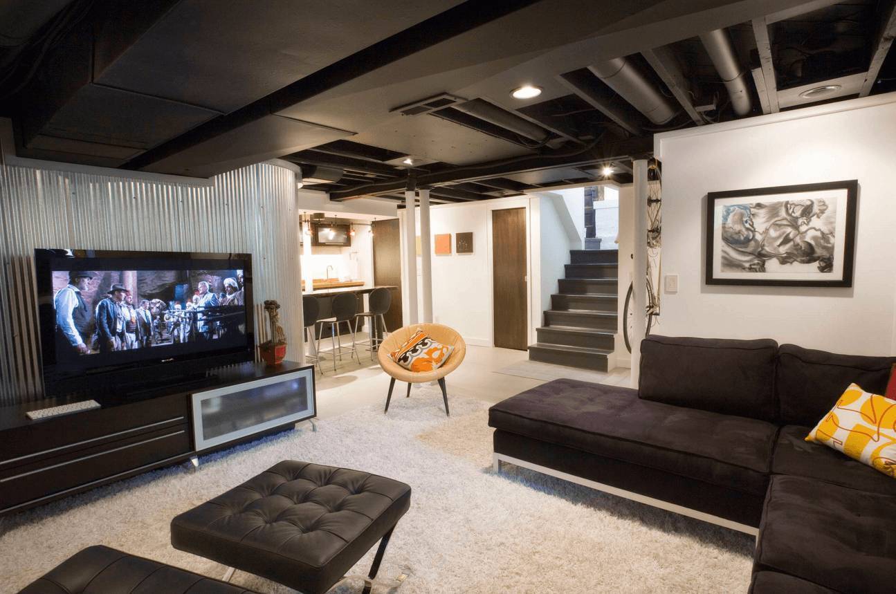 Черный потолок в интерьере гостиной: применение, фото
