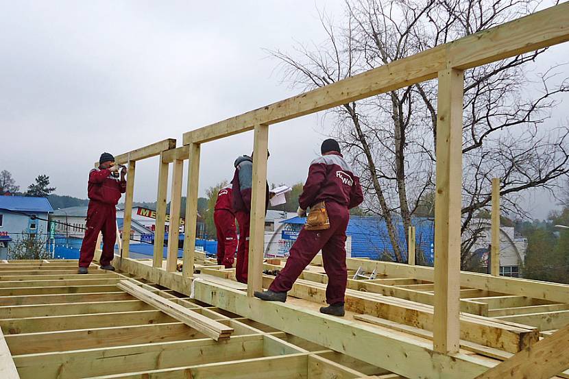 Конструктивно различается постройка крыши в доме с существующими перекрытиями или без них (в данном случае нет необходимости в укладке балок перекрытий, на которые будут установлены опоры).