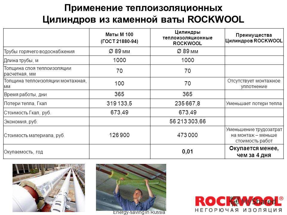 Материал надевается на собранный трубопровод или на отрезки трубы в процессе сборки системы. За счет очень низкого коэффициента теплопроводности каменной ваты достигается значительная экономия тепла при транспортировке теплоносителя или сантехнической воды. Кроме того, подобная изоляция хорошо защищает трубы от промерзания.