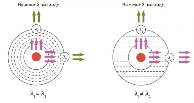 Это обеспечивает одинаковую теплозащиту по всей окружности цилиндра и позволяет точно рассчитать его оптимальные размеры для изоляции трубопровода. У цилиндров, вырезанных из готовой плиты, волокна относительно направления теплового потока располагаются по-разному, что приводит к разным теплопотерям в зависимости от направления теплового потока. В этом случае точно подсчитать теплопотери и выбрать необходимые параметры цилиндра практически невозможно. Навивные цилиндры применяют в качестве тепловой изоляции трубопроводов различного назначения, газоходов, оборудования – как внутри, так и вне помещений при температурах изолируемых поверхностей от -180°С до +650 °С.