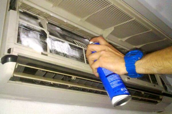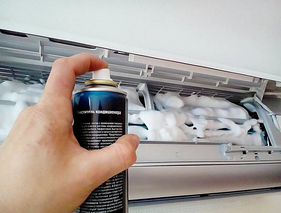 Через какое-то время пена преобразуется в жидкость, а загрязнение уходит в систему дренажа. Далее требуется включить кондиционер для высыхания обработанных деталей. Подробная инструкция, как пользоваться пенным очистителем, приводится на баллончике с изделием.