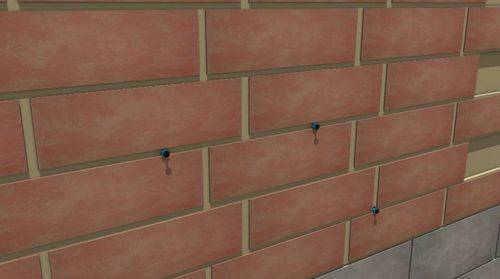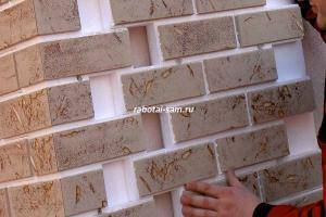 Для этой цели используется ручная циркулярная пила. В том случае если обшивка будет идти в несколько рядов панели необходимо располагать в разбежку для создания эффекта естественной кирпичной кладки - Фиксация всех элементов осуществляется таким же образом, как и в случае со стартовой полосой. Правильной крепление подразумевает наличие люфта – панели должны иметь возможность ходить из стороны в сторону;