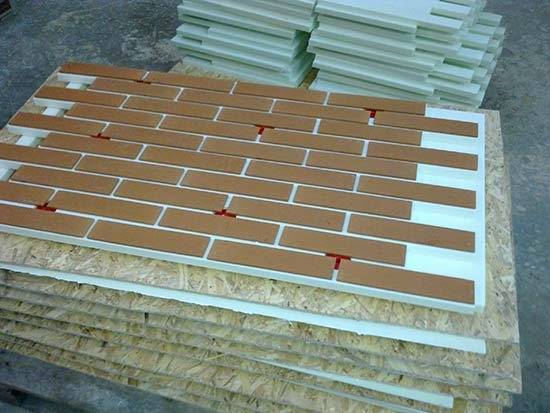 Производство происходит в специальной пресс-форме, в которой заранее деланы пазы под клинкерную плитку. Сначала заливается слой утеплителя, а когда он застывает, заливают слой внешней облицовки.