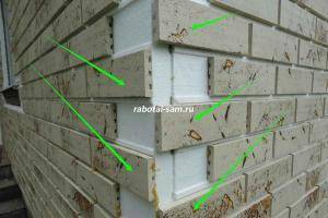 Не жалейте монтажную пену во время работ, с ее помощью можно улучшить показатели теплосбережения. Наносить ее можно не только на цоколь, но и на обратную строну плит. Во время сдвигов замков часть ее удалится, но оставшаяся выполнит свои задачи. Идеальной поверхности цоколей достичь невозможно, а только к таким плоскостям будут плотно прилегать ровные плиты пенополистирола. Это значит, что следует принимать все меры, чтобы если не улучшить прилегание, то хотя бы уменьшить вероятность образования больших зазоров по всей высоте цоколя. В закрытых воздушных камерах конвекция воздуха не приносит большого вреда, главное чтобы холодный воздух не попадал на поверхность теплого цоколя, а теплый не уходил наружу.
