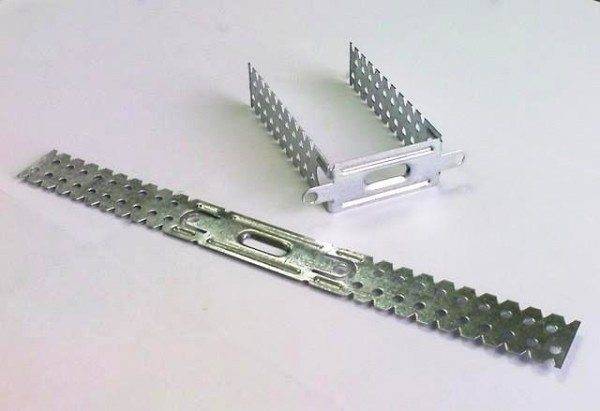- По очерченным линиям монтируются стеновые крепления – если основой служит цокольная панель ЖБИ или стеновая цокольная панель, то их монтаж осуществляется посредством анкерных шурупов, которые вставляются в предварительно сделанные отверстия. Также следует поступать со всеми бетонными и кирпичными поверхностями;