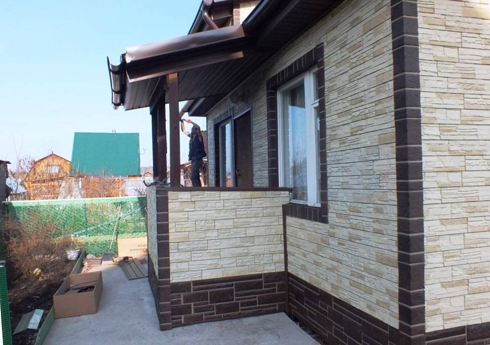 Панели под тесаный камень с высотой 600мм помогут оформить высокий цоколь.