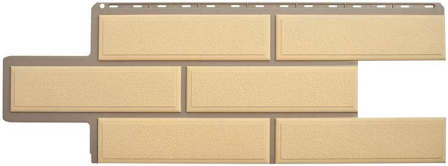 Цокольные панели имитируют стеновую кладку из одинаковых прямоугольных каменных блоков с необработанной лицевой поверхностью..
