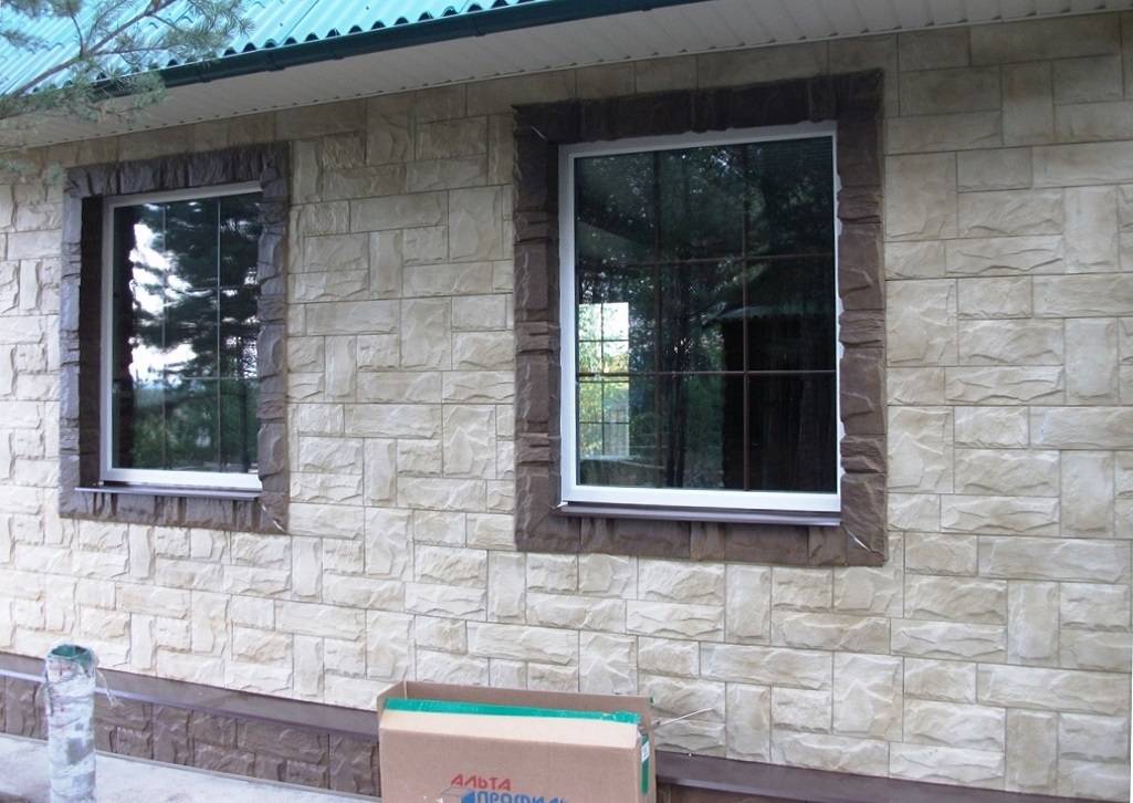 Фасадные панели имитируют кладку из больших необработанных булыжников. Подобная фактура часто применяется для отделки цоколя.