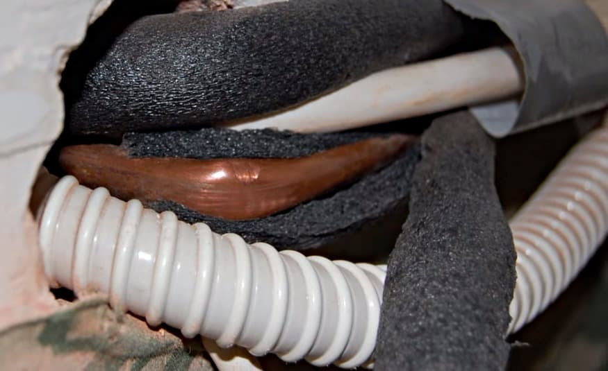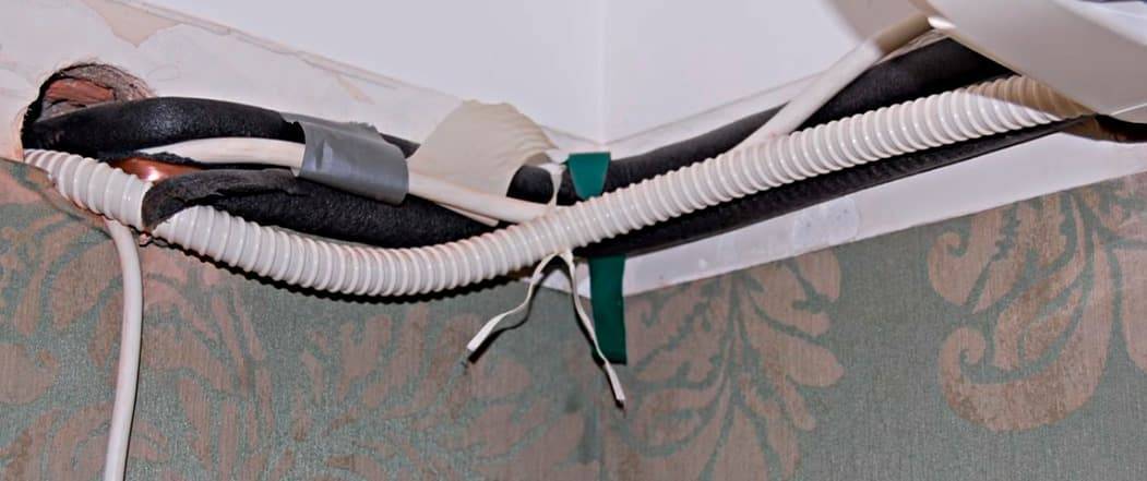 Если вы выглянули в окно и увидели, что рядом с наружным блоком или под ним капает вода, внимательно присмотритесь. Откуда именно капает конденсат? С высокой долей вероятности вы обнаружите, что вода вытекает из тонкой гофрированной трубки.