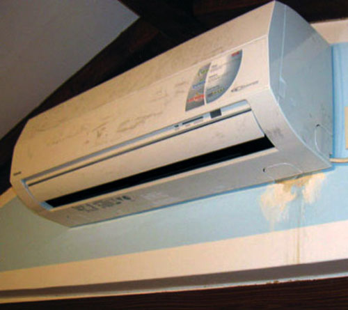 В особых случаях установки (если отсутствует техническая возможность отвода конденсата на улицу или нельзя соблюсти необходимый уклон) в дренажной системе используют насосы (помпы) и сифоны. В случае возникновения неисправностей или засорения этих устройств, также течет внутренний блок сплит-системы.