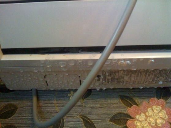 Если прибор долго функционирует в режиме охлаждения, то на трубках, проводящих фреон, и на других узлах скапливается конденсат. В результате вода течет из внешнего блока по фасаду.