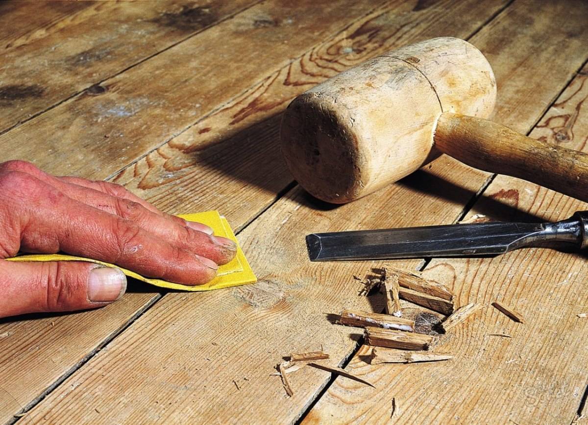 Результат неправильной эксплуатации пола. Для работы берут деревянную щепу или клинья. Ширина последних 35, а толщина – 3 мм. Ремонт проводят следующим образом: