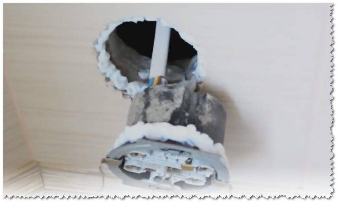 Если же вы живете в доме панельного типа, а квартире старая электрическая проводка, то часто выключатели розетки будут плохо держаться в стене и начнут выпадать, так как установлены лишь в сквозное отверстие и без подрозетника в перегородке. Наглядно ситуация показана на фото ниже.