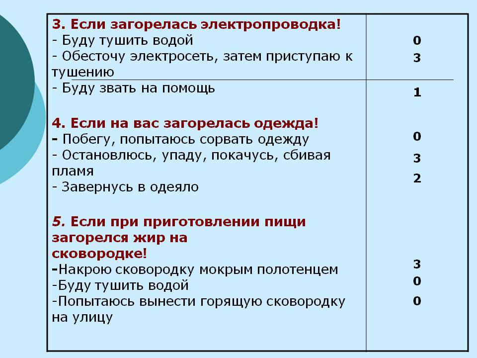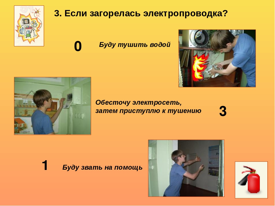 Статистика показывает, что часто люди не знают правил поведения при горении электрического кабеля. Алгоритм действий в такой ситуации следующий: