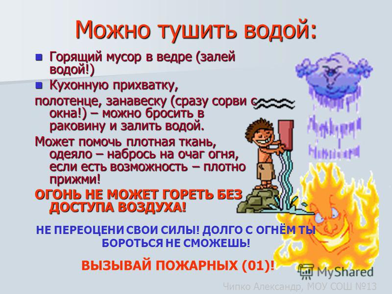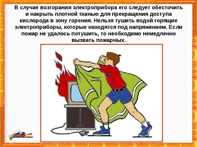 - Потушить возгорание. При необходимости можно позвать на помощь соседа.