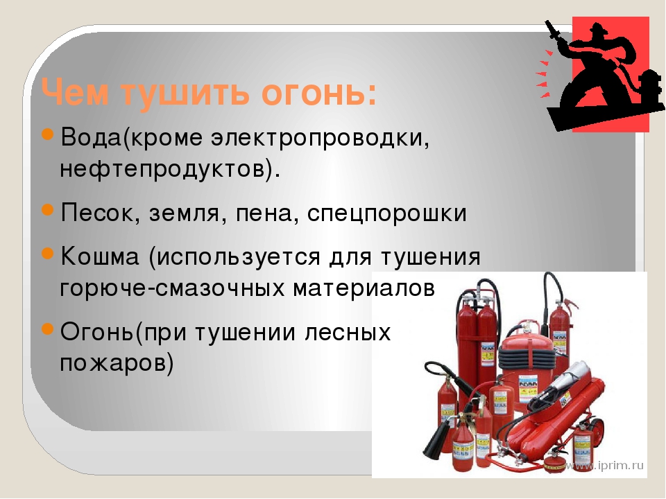 - Приступить к тушению пожара, используя для этого все доступные способы.