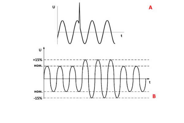 Пример временного и импульсного перенапряжения электросети