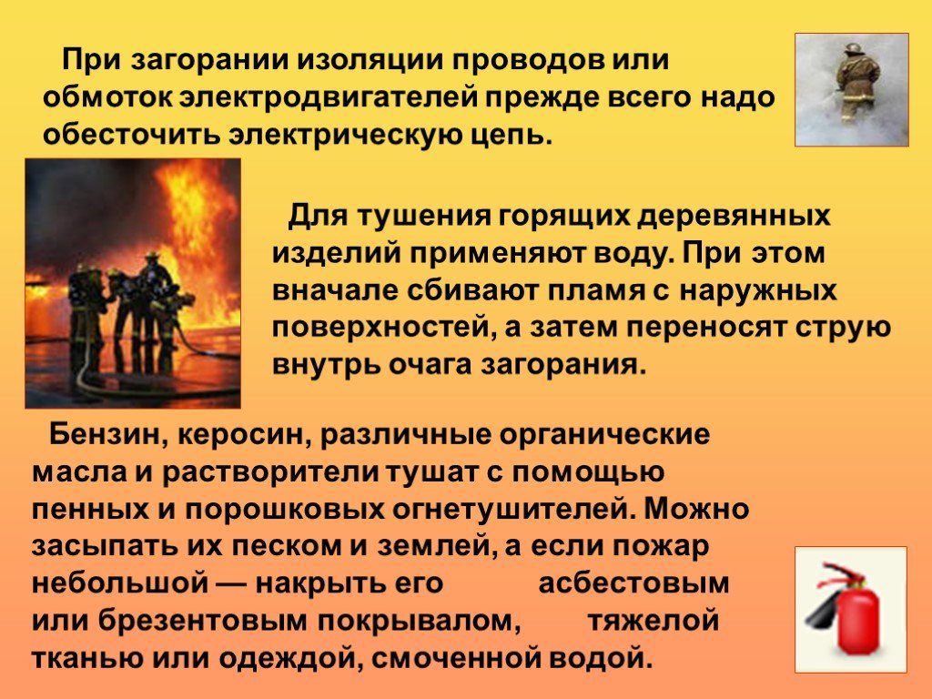 Способы гашения горящей проводки
