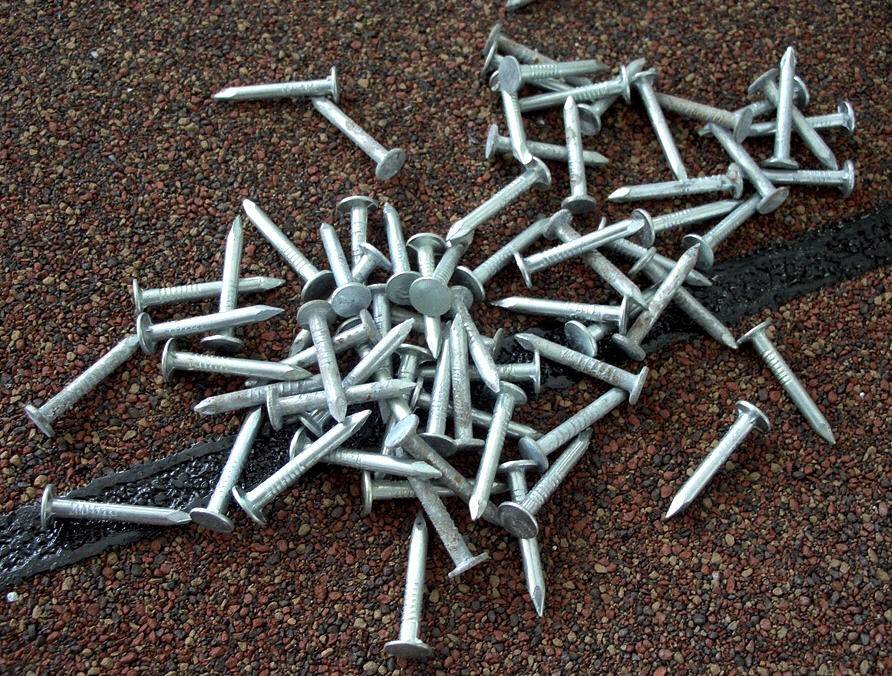 - Для фиксации требуется не менее 20 гвоздей. Если попытаться сэкономить на расходных метизах, то это приведет к снижению допустимой нагрузки на покрытие.