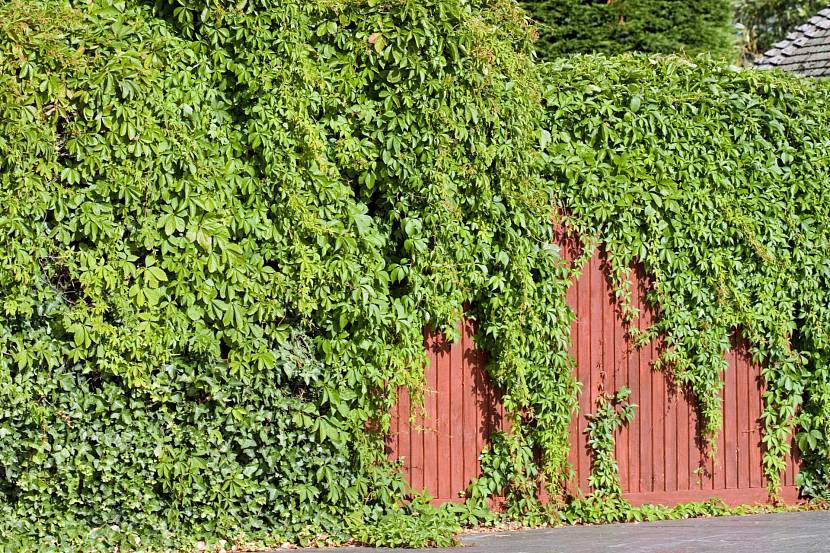 Дикий виноград в сочетании с плющом вдоль высокого деревянного забораИсточник publicdomainpictures.net