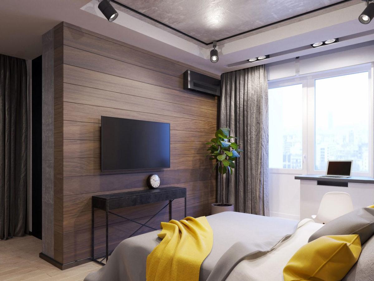 Организуйте функциональное и практичное место для установки телевизора. Это не должна быть классическая тумба, которая занимает много пространства. Лучше повесить плазму на стену или вмонтировать внутрь, установить среди полок или стеллажей.