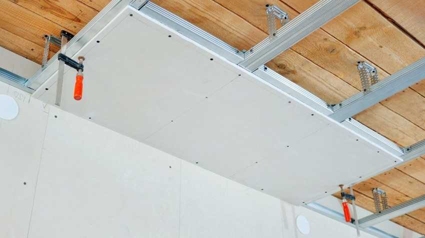 При создании подвесных потолков, панели ГВЛ крепятся на деревянную или металлическую обрешетку.На заметку! Если применять для оформления потолка влагостойкую плиту ГВЛ, получится надежно защититься от протечек с верхних этажей или крыши. Лучше всего подбирать листы толщиной от 1 см.