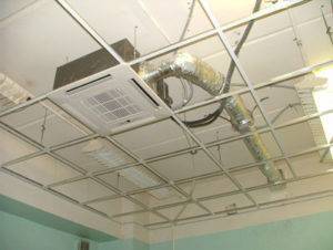 Установка внутреннего блока кассетных кондиционеров начинается с частичного разбора потолка: