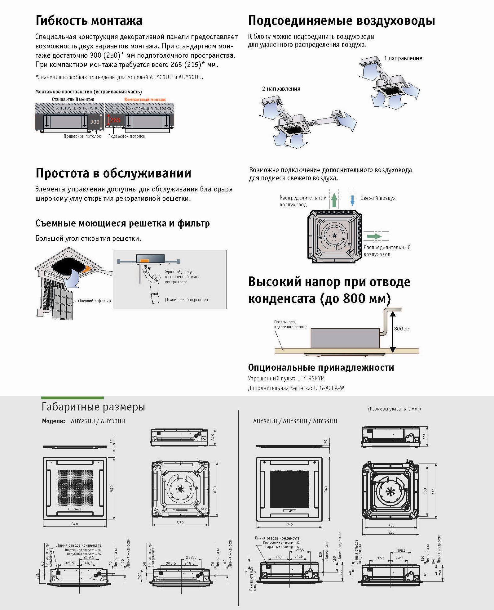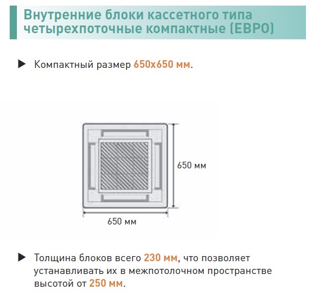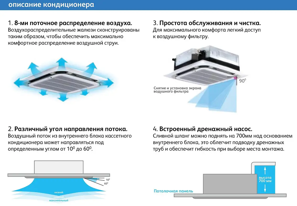 Кондиционеры кассетного типа обладают следующими преимуществами: