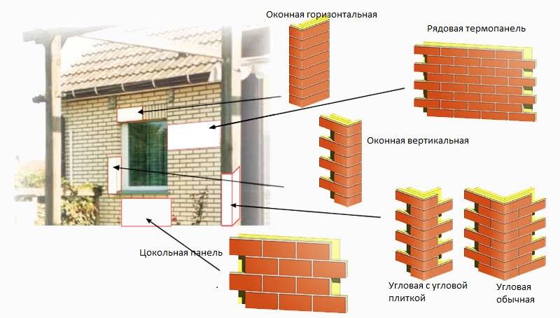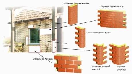 Термопанели с клинкерной облицовкой выпускаются в различных вариантах. Помимо рядовых панелей, производители предлагают различные виды угловых и оконных, это значительно облегчает отделочные работы и повышает их качество. Проблемой является лишь отрезка панелей по длине, если не удалось разместить их на стене кратно целым плиткам