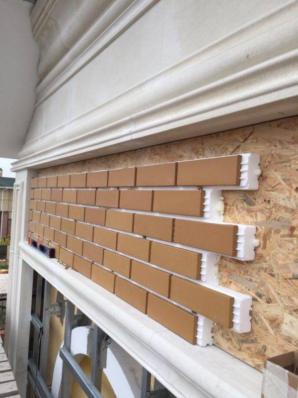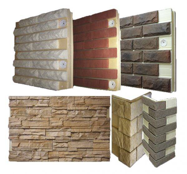 Представляют собой плиты пенополистирола высокой марки (25, 35), на которые с лицевой стороны нанесён декор в виде кладки клинкерным кирпичом или каменного рельефа. В комплект поставки, как правило, входят цокольный профиль, фасадные дюбели, закладные элементы и затирка для швов.