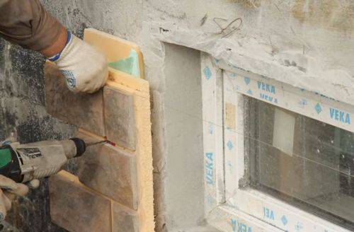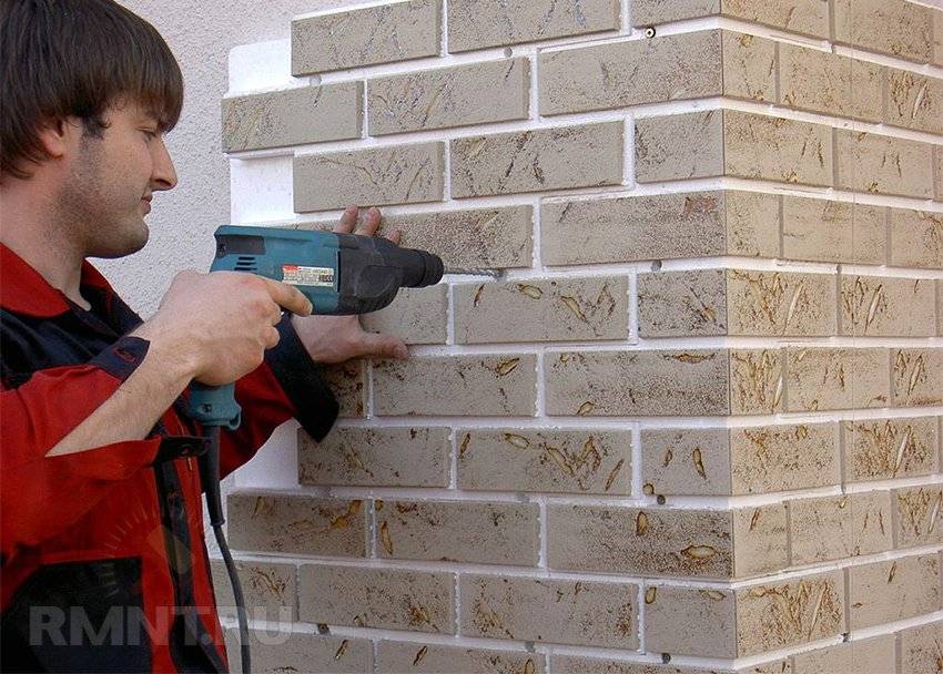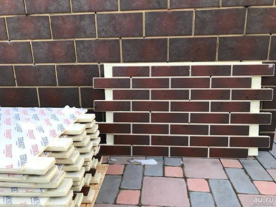 Клинкер наклеивается на теплоизоляционную основу с помощью специального клея, швы между отдельными плитками могут быть заполнены при изготовлении термопанели или после её монтажа. После монтажа панелей специальной затиркой заполняют швы между ними. Специально для утепления наружных углов выпускают угловые панели Г-образной формы, облицованные специальной угловой плиткой. Качественная клинкерная плитка — материал чрезвычайно прочный, долговечный и эстетически привлекательный. Но дорогой.