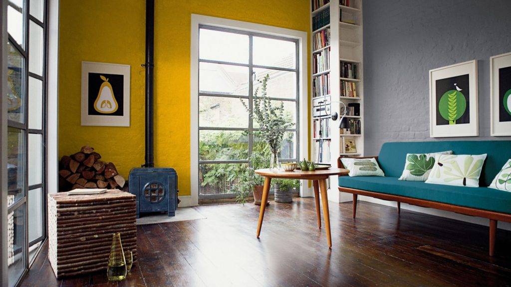 - Объединение желтого цвета с черным — создаст сильный контраст, который придаст интерьеру твердый, сильный характер, и в то же время черный не будет таким подавляющим.