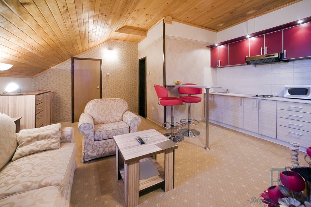 Используйте преимущественно теплые тона, иначе помещение получится слишком строгим
