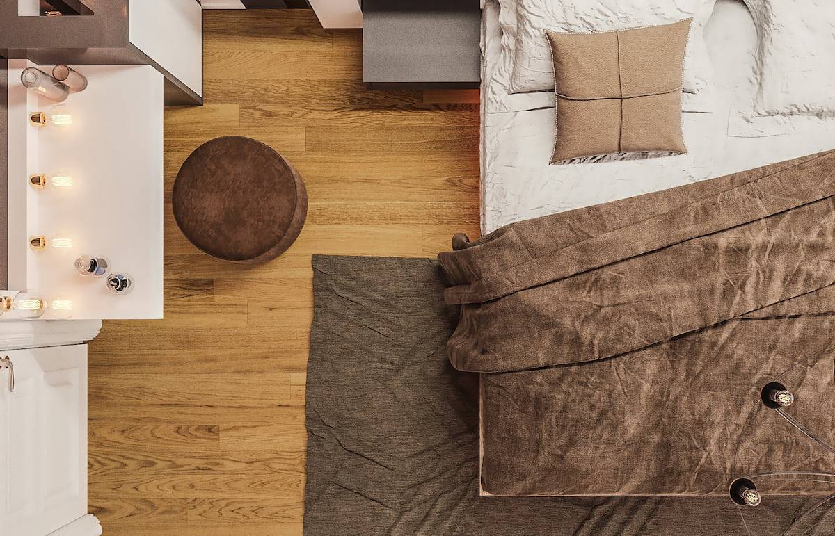 Пол. Для пола можно выбрать любой традиционный вариант материала: плитку, ламинат или линолеум. Отлично в современных интерьерах также выглядят глянцевые наливные полы. Из цветов лучше всего подойдут светлые оттенки коричневого и серого.