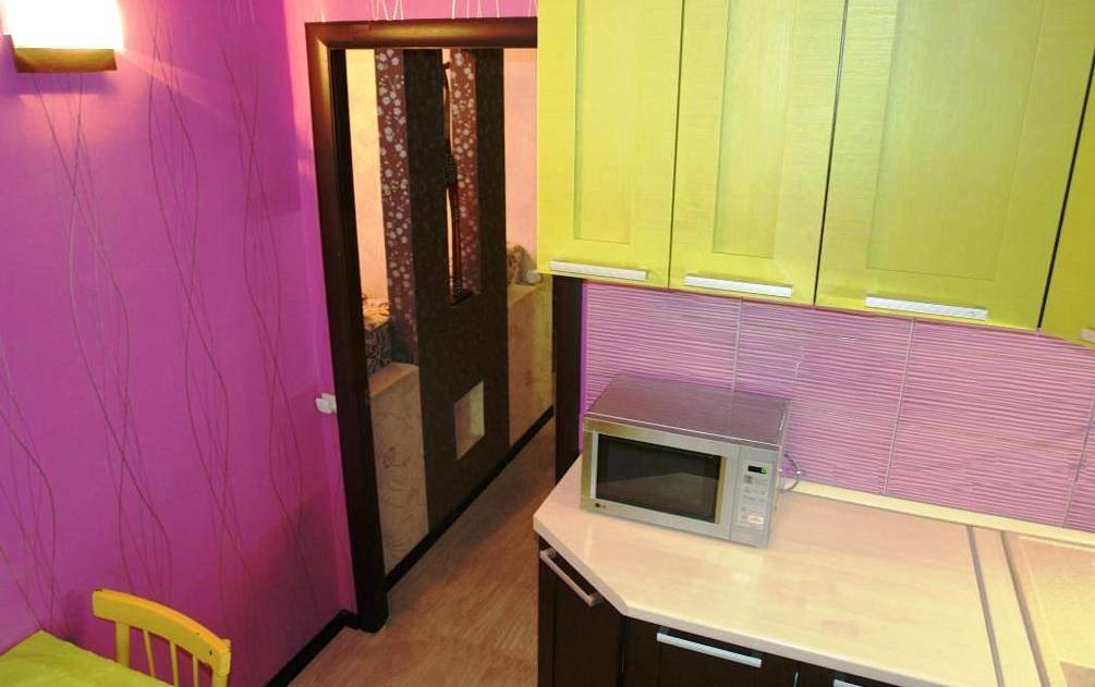 Разбавить «фуксию» ярко-желтым цветом в таком же количестве. Как ни странно, но два ярких оттенка нейтрализуют друг друга. Хотя, интерьер получается сильно «на любителя».