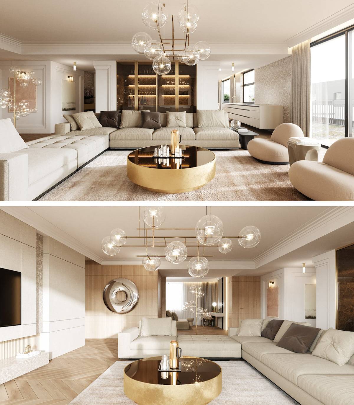 Сочетание создает изысканный и мягкий интерьер