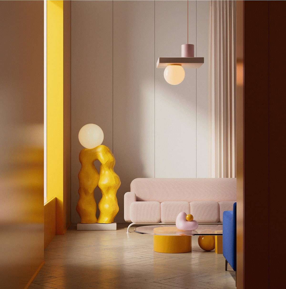 С желтым хорошо гармонируют более светлые, пастельные оттенки.