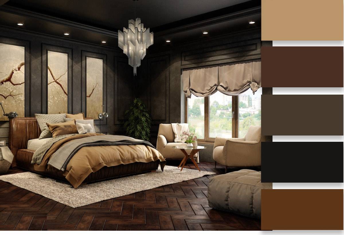 Становится популярным еще один успокаивающий модный оттенок темного имбиря с нотками хурмы. Он теплый и уютный. Позволит внести в атмосферу комнаты не только комфорт, но и ощущение благородной роскоши в сочетании с золотыми, вишневыми акцентами. Хорошо соседствует с колером красного дерева.