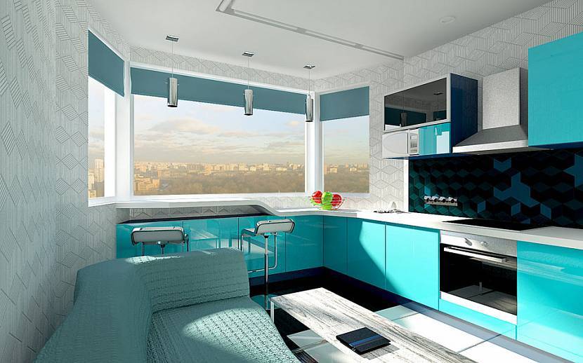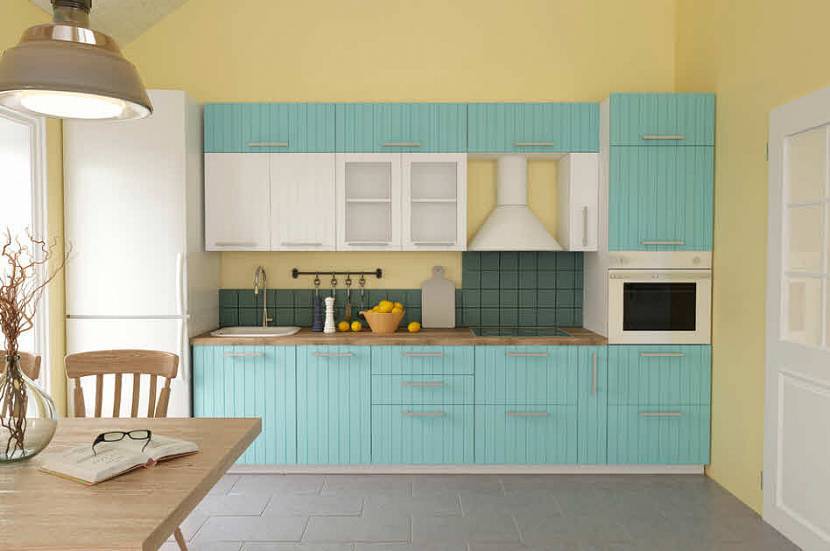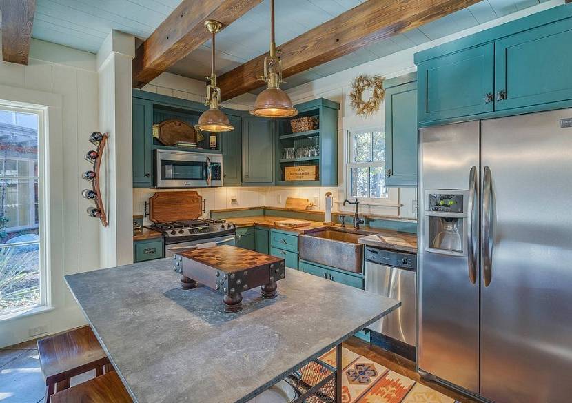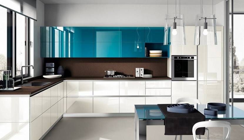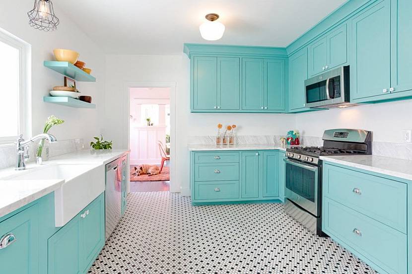 Бирюзовый цвет в интерьере кухни поможет расслабиться после сложного трудового дня и настроиться на позитивный лад.