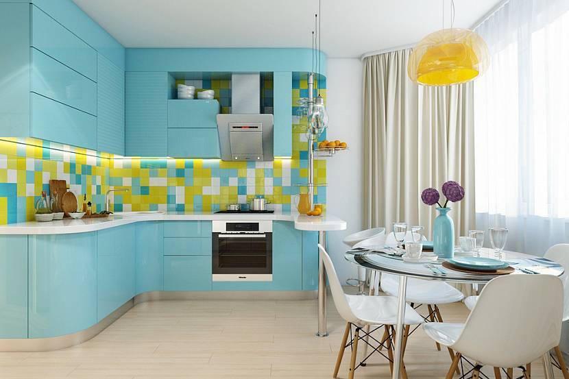 Кухня в бирюзово-желтых тонахИсточник rerooms.ru