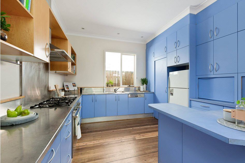 Так, кухни синего цвета, фото которых можно посмотреть и подобрать подобающий стиль, представлены в широком разнообразии.